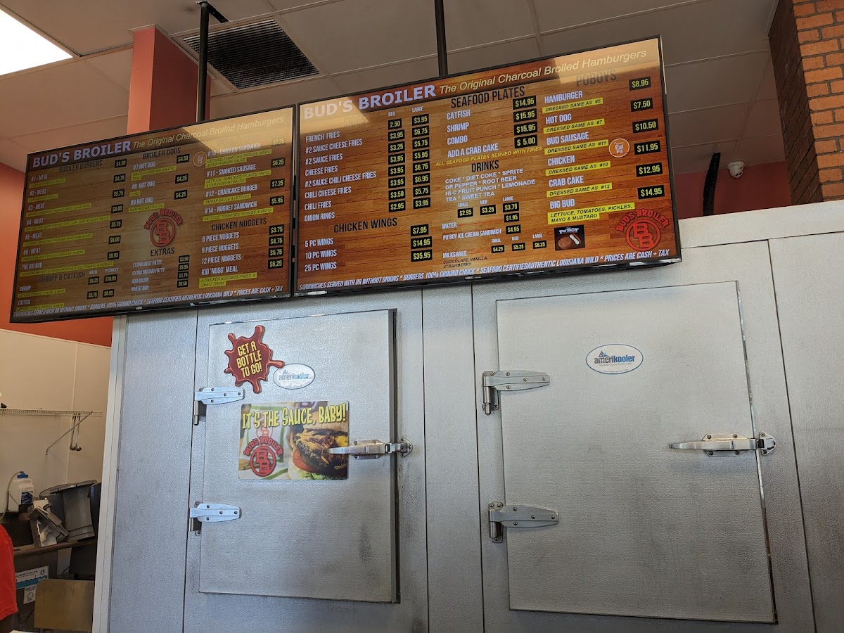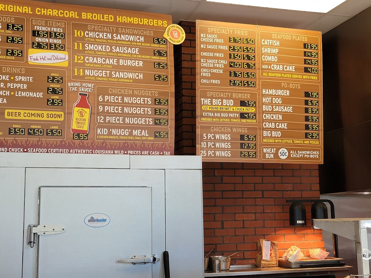 From a reviewer’s perspective, the menu at Bud's Broiler offers a satisfying snapshot of classic New Orleans comfort food, bringing together simplicity, variety, and familiarity in a way that feels true to its local roots. The beverage selection, including Half & Half Tea, Sweetened Iced Tea, Sprite, Bottled Barq's Root Beer (12 Oz), and Bottled Water (16.9 Oz), sets an easygoing tone that pairs well with hearty mains. For younger diners, the Kid's Meal Nuggets provide a straightforward, family-friendly option. On the sweeter side, desserts like the Milkshake and PIES round out the meal with nostalgic charm. The sides menu is particularly indulgent, featuring Onion Rings alongside loaded options such as Cheese French Fries, Chili French Fries, Hickory Sauce French Fries, and the customizable Extra Scoop Sauce Or Chili, all designed to complement the bold flavors of the mains. Burger and hot dog lovers are well cared for with choices like the #3 Cheddar Burger, #6 Dressed Cheddar Burger, #2 Hickory Sauce Burger, Plain Hot Dog, and the standout #8 Chili Hot Dog Sandwich, each reflecting Bud’s Broiler’s signature grilled style. Seafood also plays a strong role, with the Shrimp Sandwich, Shrimp Poboy, Catfish Sandwich On Bun, Seafood Plate, and the #12 Crab Cake Sandwich highlighting regional influences. Finally, the “Sandwiches & More” section expands the menu with comfort-driven picks such as the #10 Regular Chicken Sandwich, #11 Smoke Sausage Sandwich, #14 Chicken Nugget Sandwich, Chicken Wings, and Chicken Nuggets. Taken as a whole, the menu feels well-balanced and confidently traditional, making Bud’s Broiler a dependable stop for anyone seeking classic flavors and a no-frills dining experience in New Orleans.